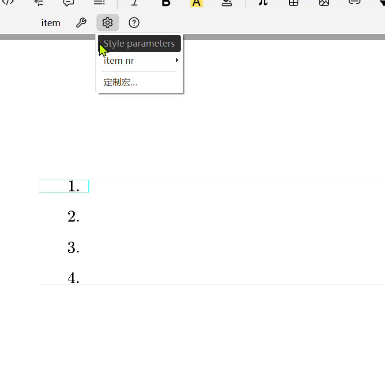 a. b. c.andA. B. C.. - Added menu entries for ordered lists/arrangements: