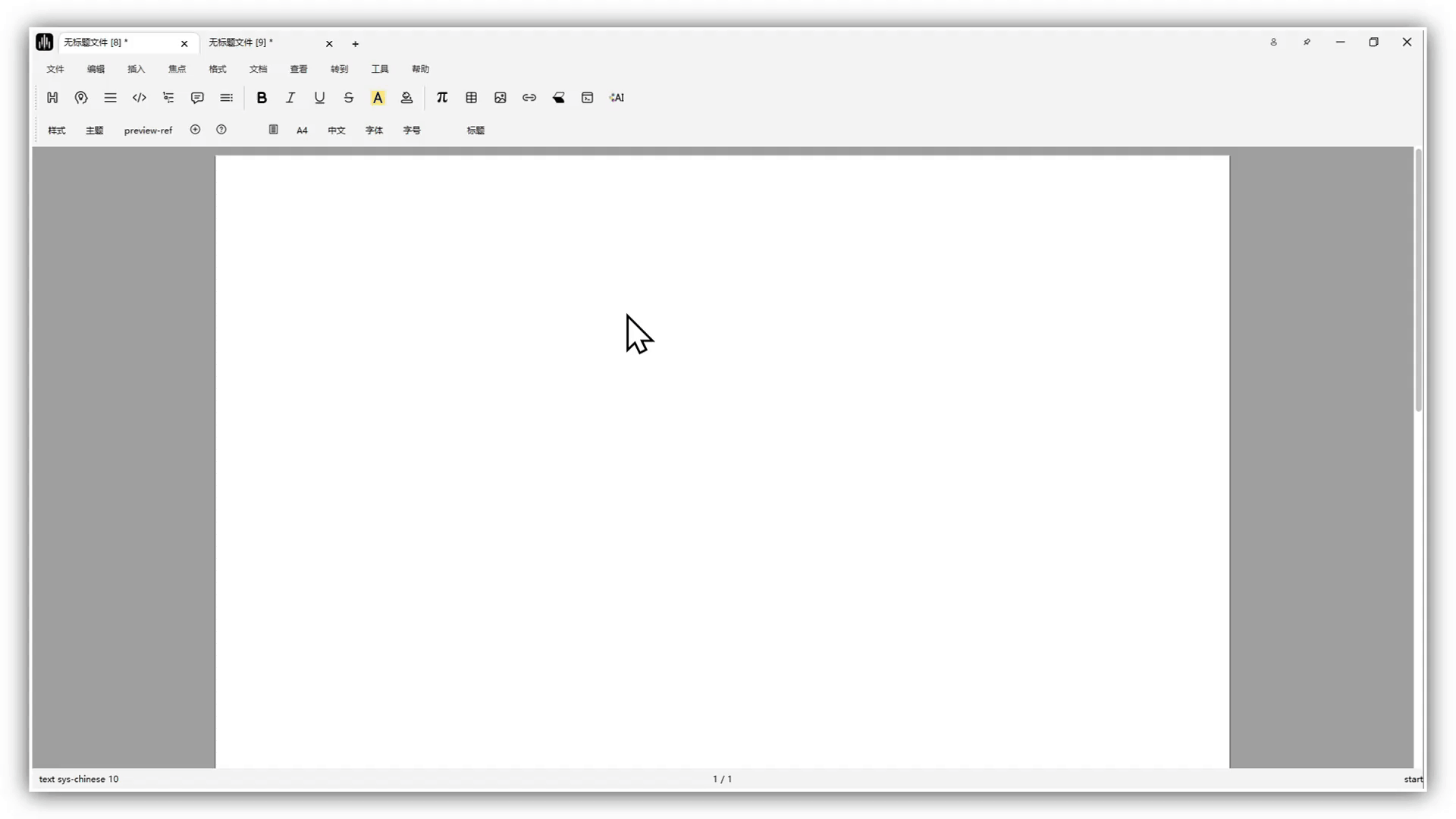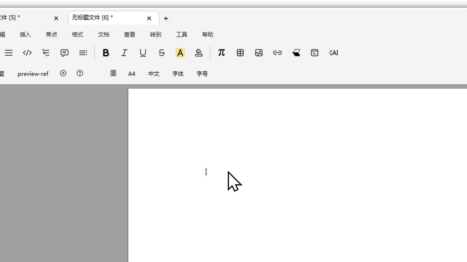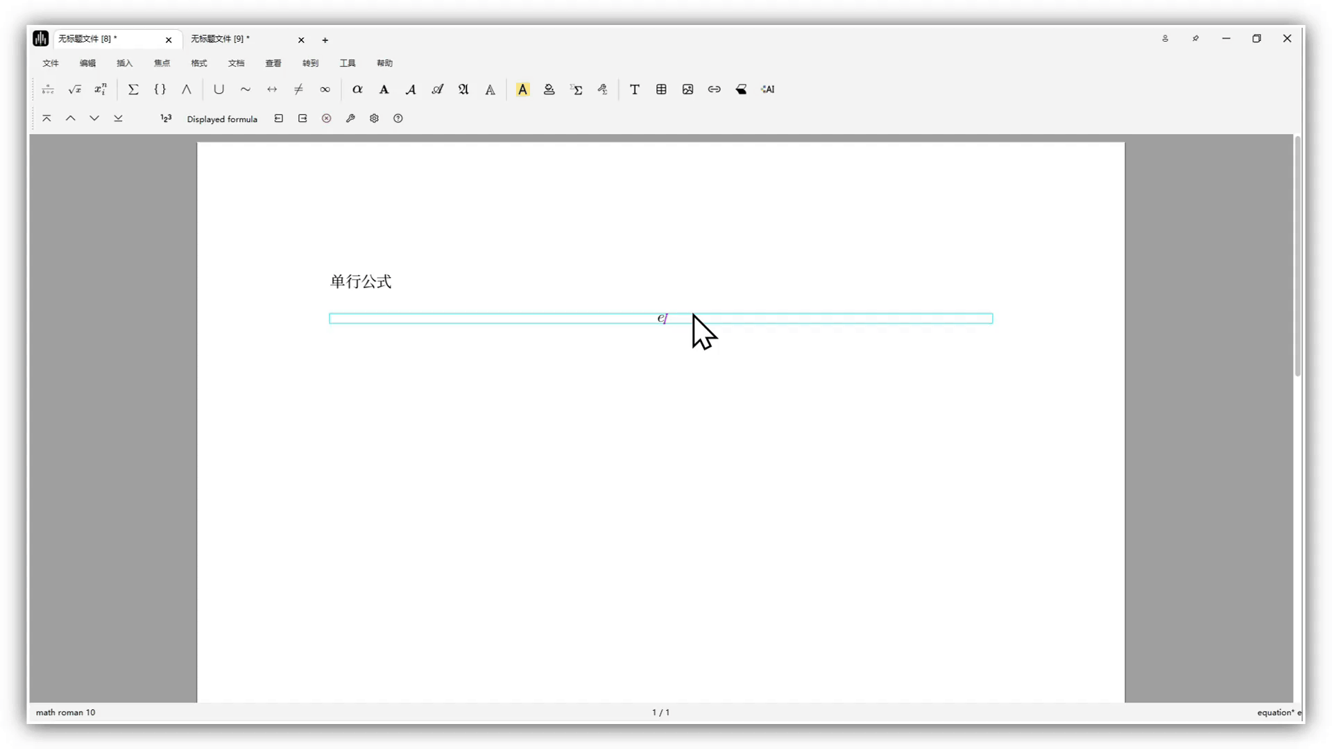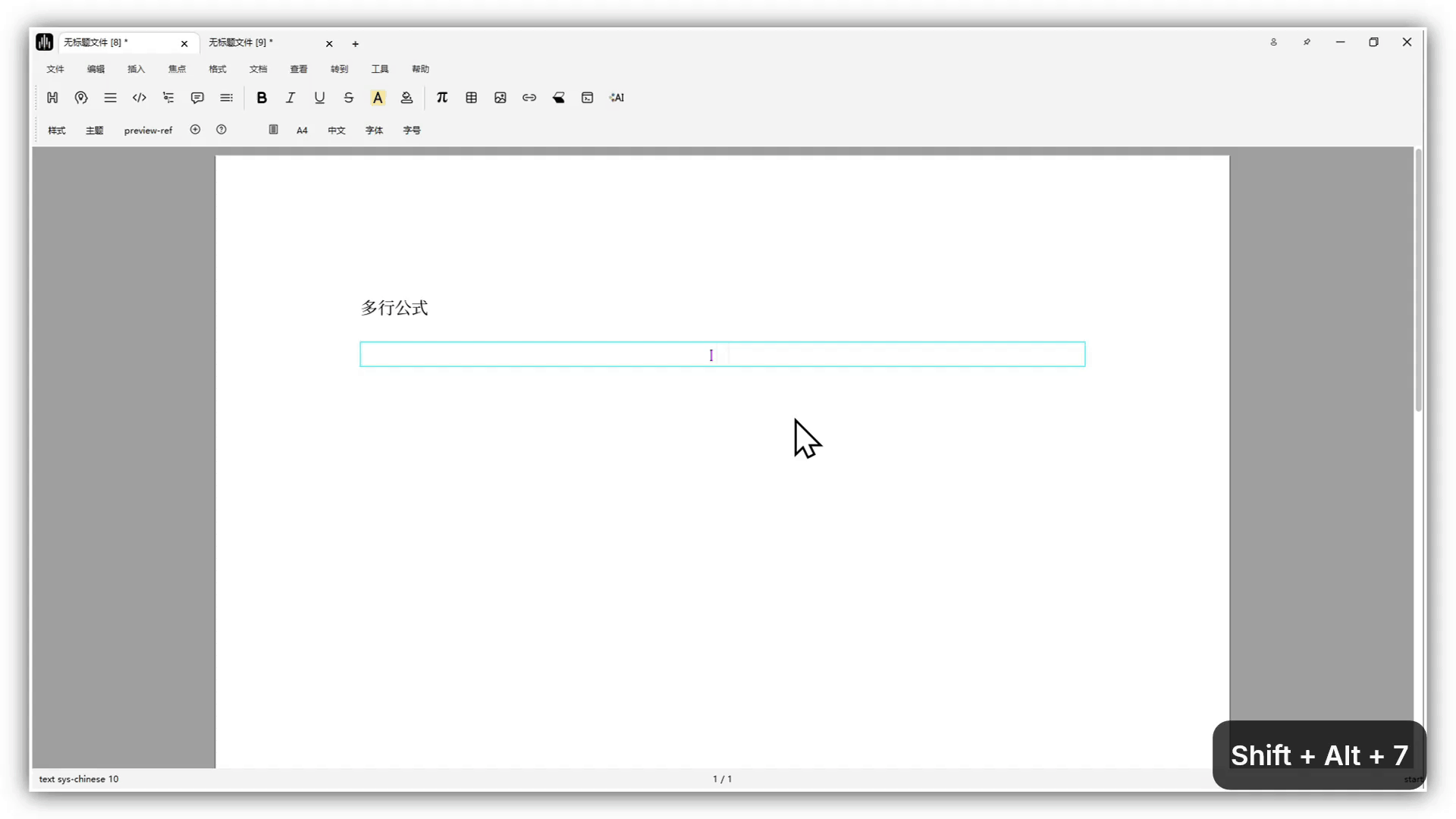 In text mode, click the π button in the mode toolbar, then choose inline formula, single-line formula, or multi-line formula.