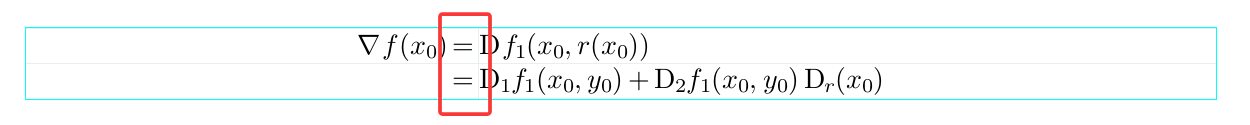 The two multi-line environments use different alignment styles: