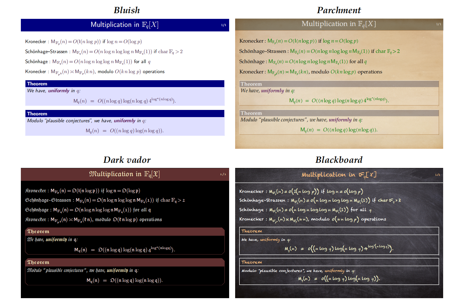 Mogan's slides are WYSIWYG versions of LaTeX Beamer slides. The main difference from Microsoft PowerPoint (PPT) is the target user group.