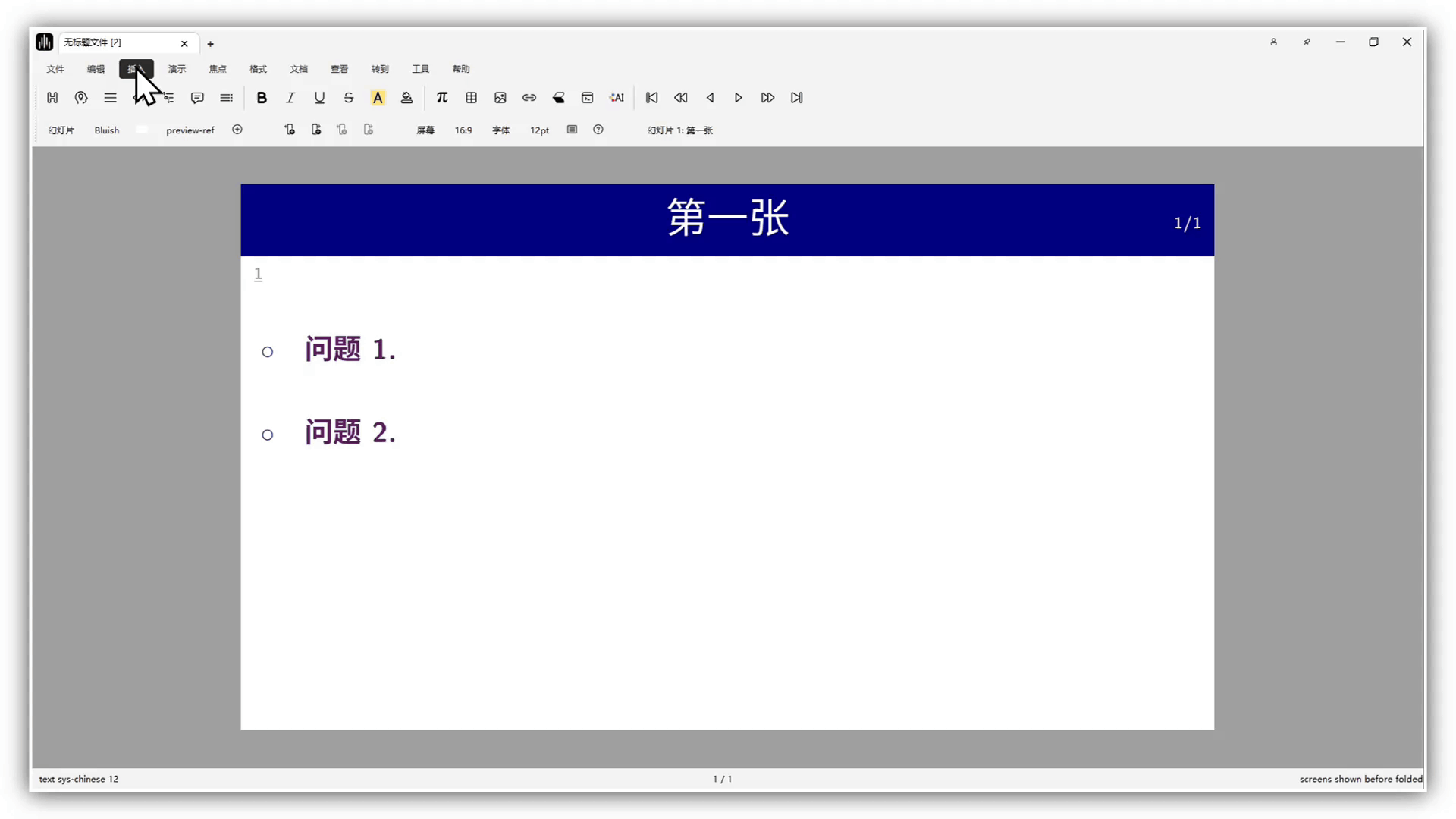 Use the focus toolbar to add slides and switch slides.