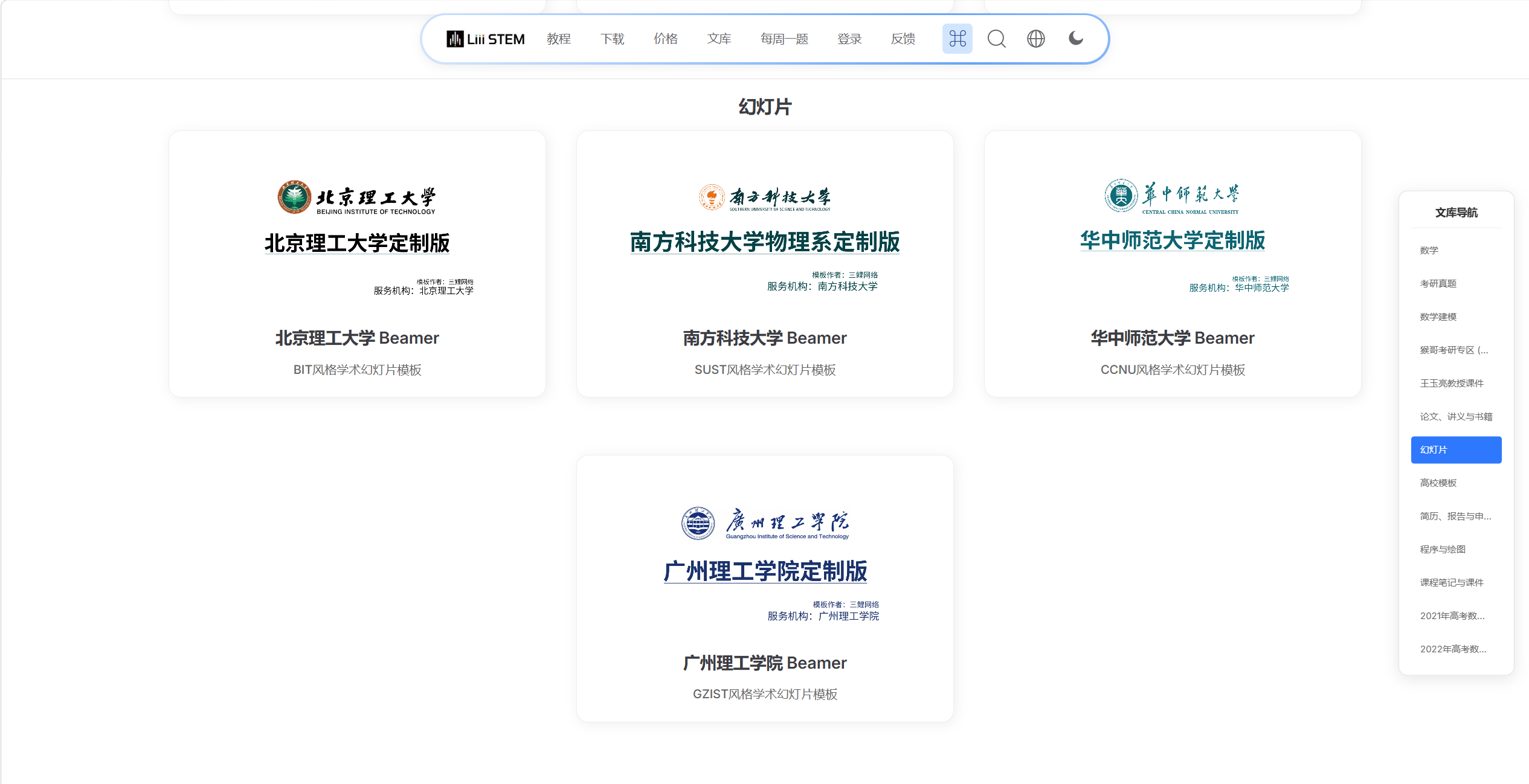 Go to the official website, click the docs library, scroll down to the slides section, click a template, then click download to get it. (Included templates are shown below.)