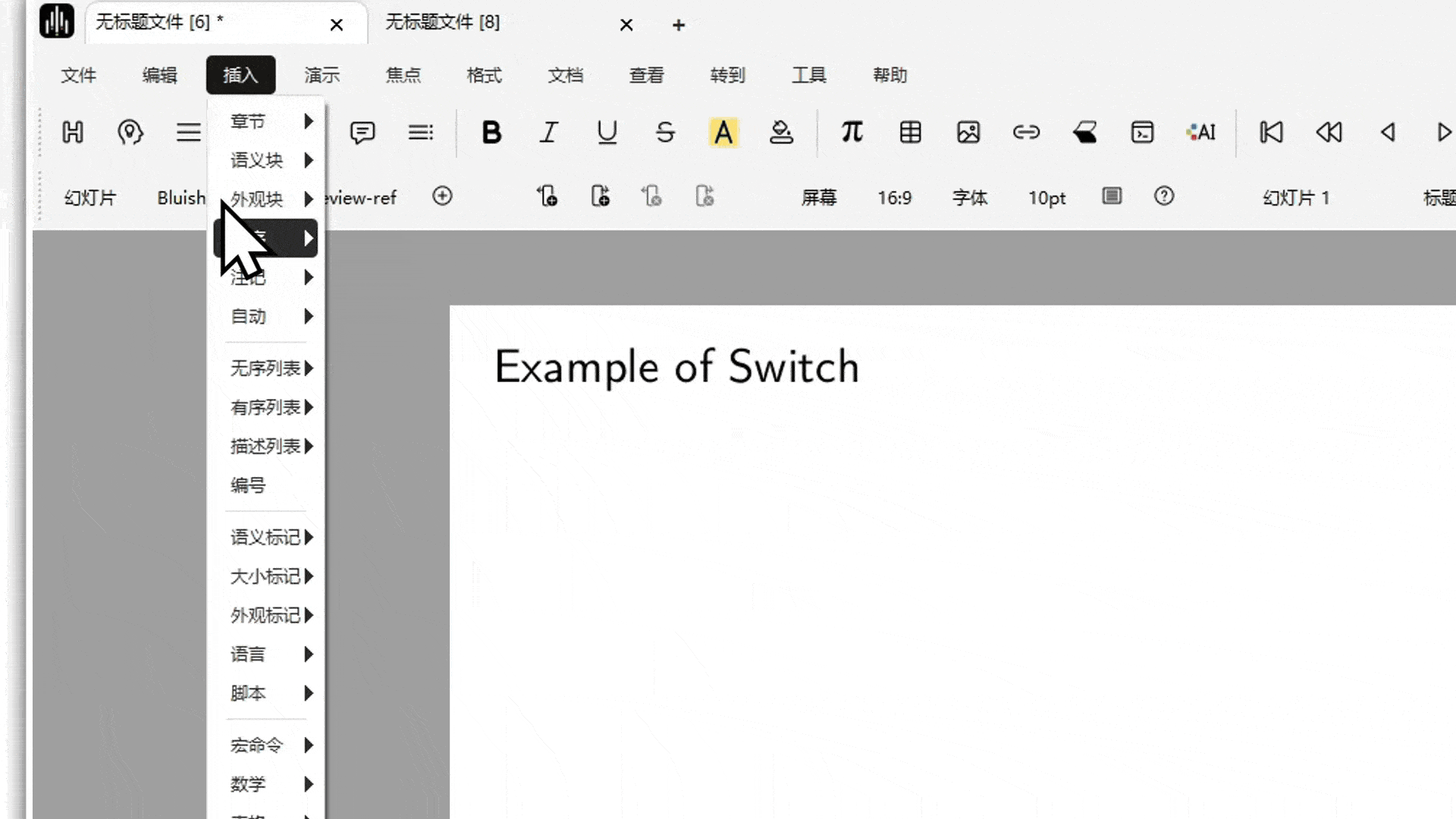 After inserting a Switch module and finishing content input on the first layer, you need to press Alt + →, or switch as shown below, to move to the second or even third layer so the effect takes place.