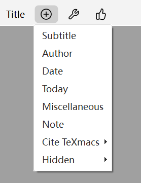When the cursor is inside a Title environment, you can insert different subenvironments from the focus (current environment) toolbar, as shown below: