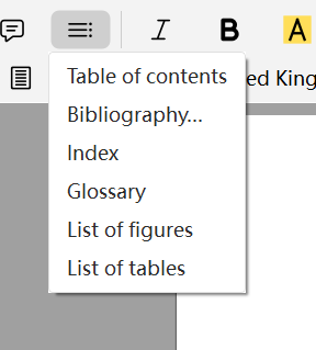 Note! Do not manually edit the automated environments (such as the Table of Contents and Bibliography), as this will affect the final generated results.