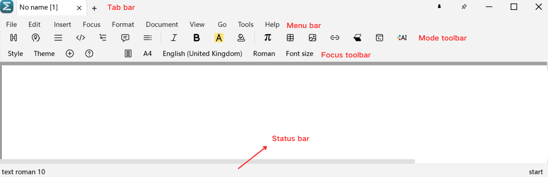 Text Mode: The text mode, used for writing and inserting text, images, tables, etc.