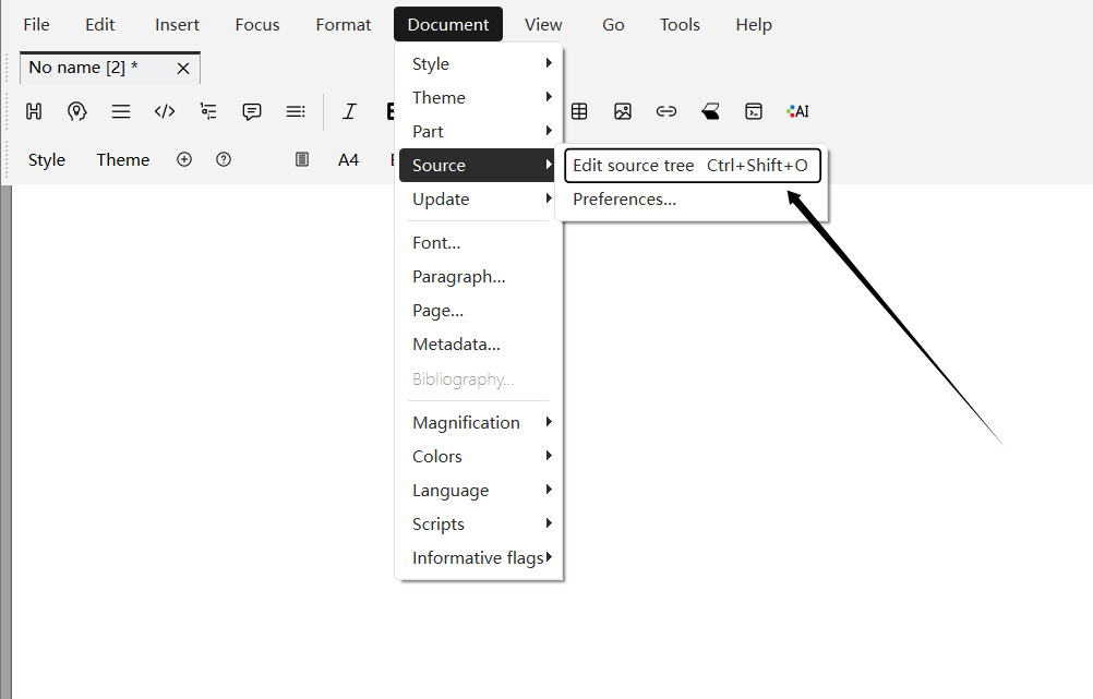 Document ➔ Source Code ➔ Edit Source Code Tree