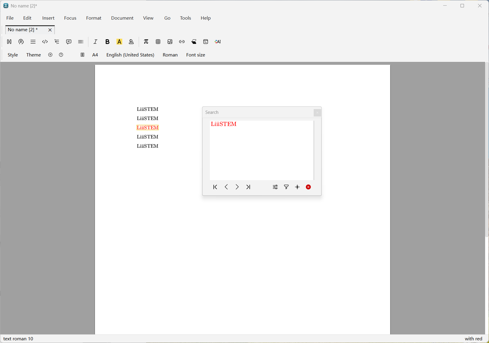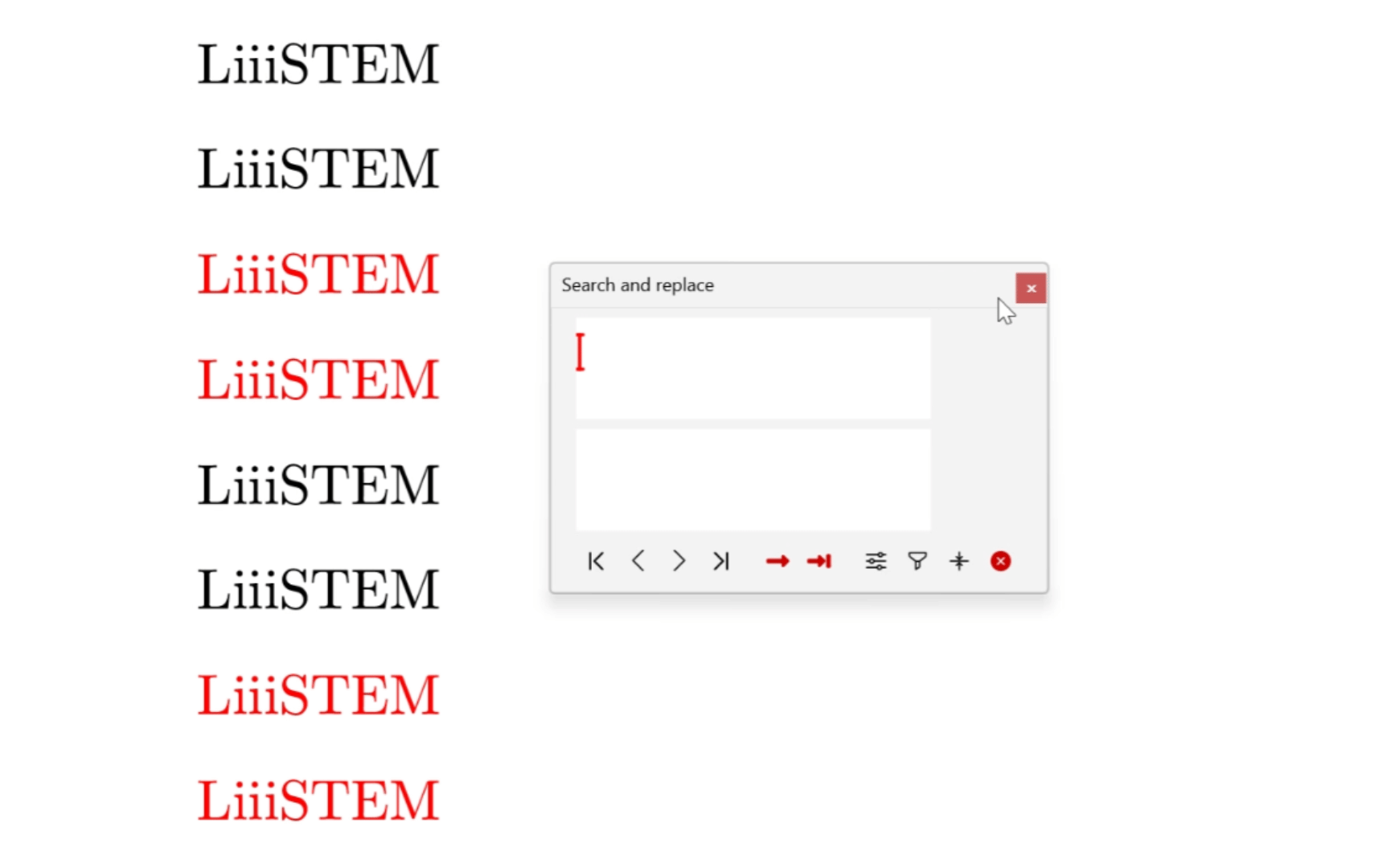 The plain text search and replacement interfaces are at the bottom of Liii STEM (as shown in Figure 3 and 4.)