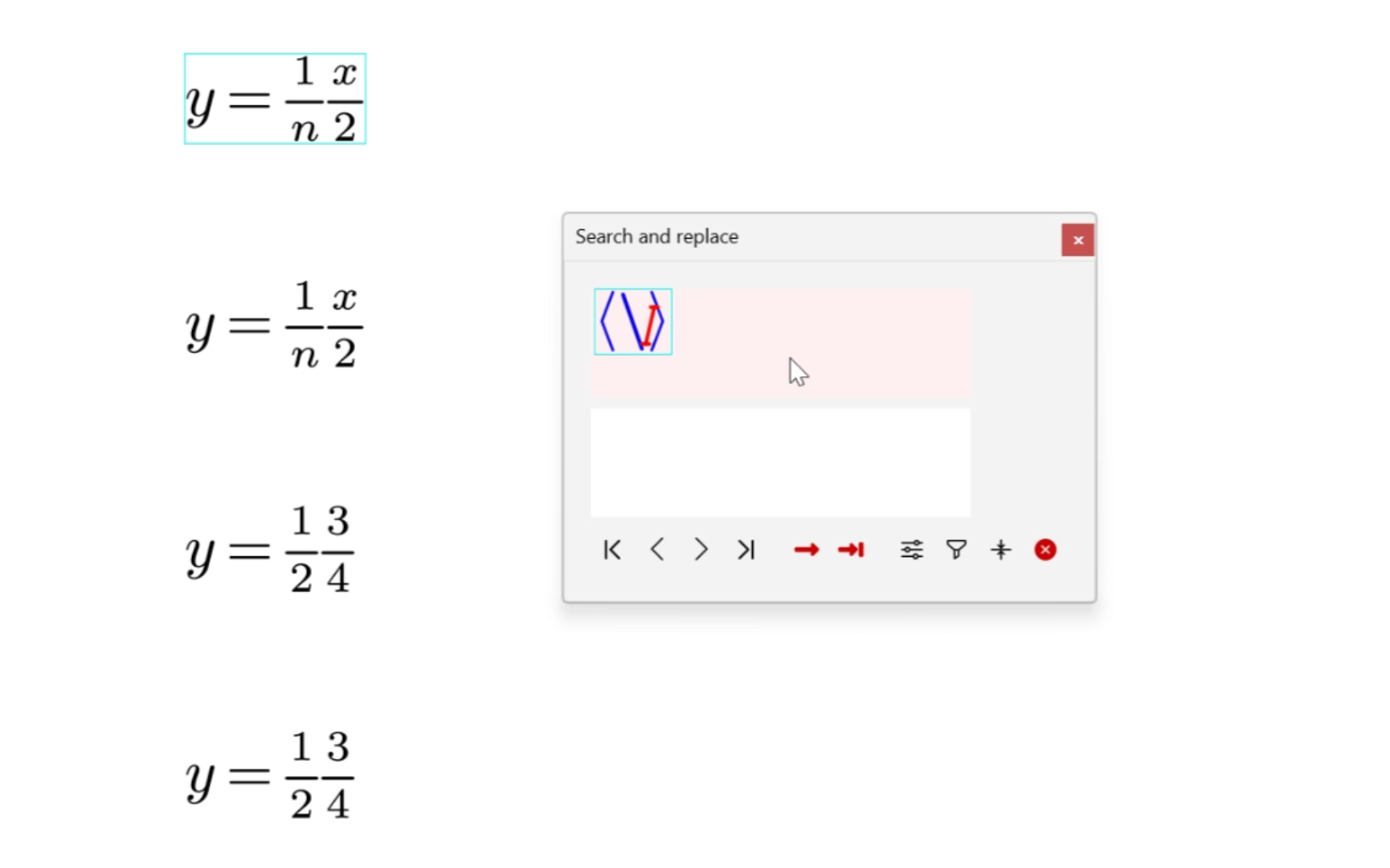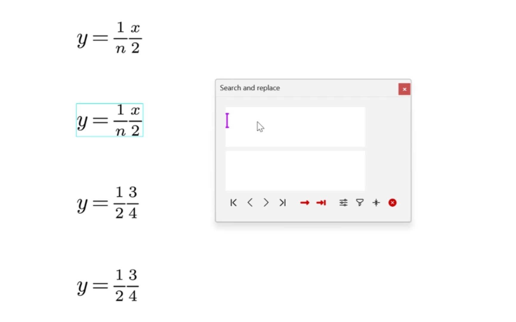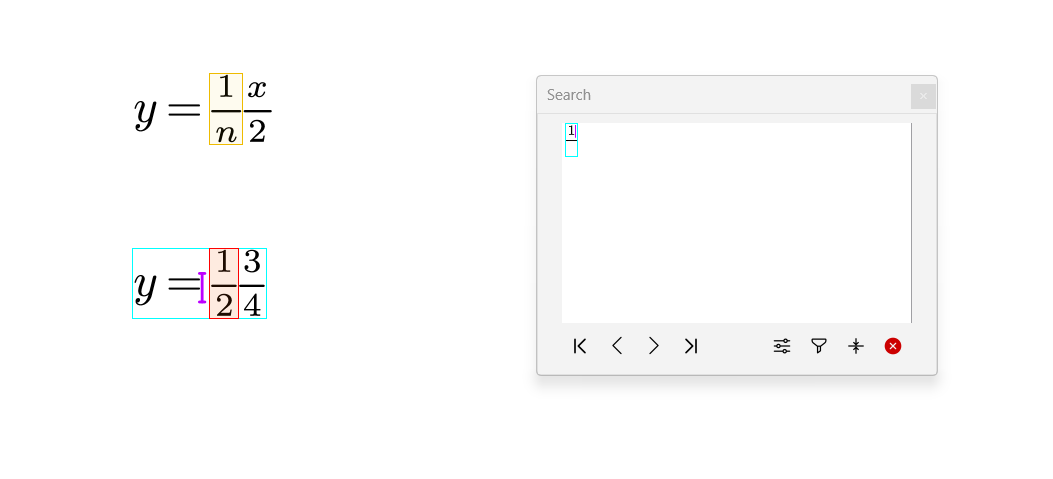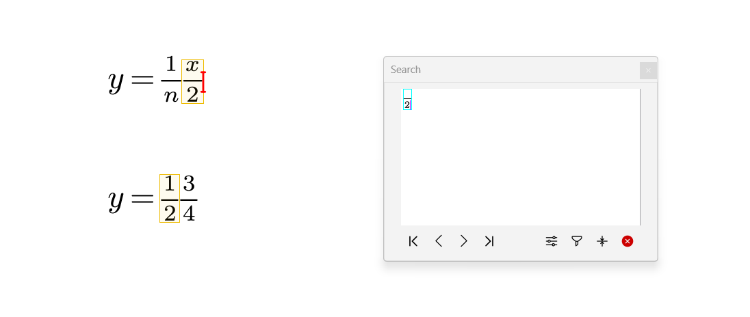 As an enhancement to the plain text search and replacement. We introduce the _Structured Search and Replace _that enables users to search and replace any content, including math!