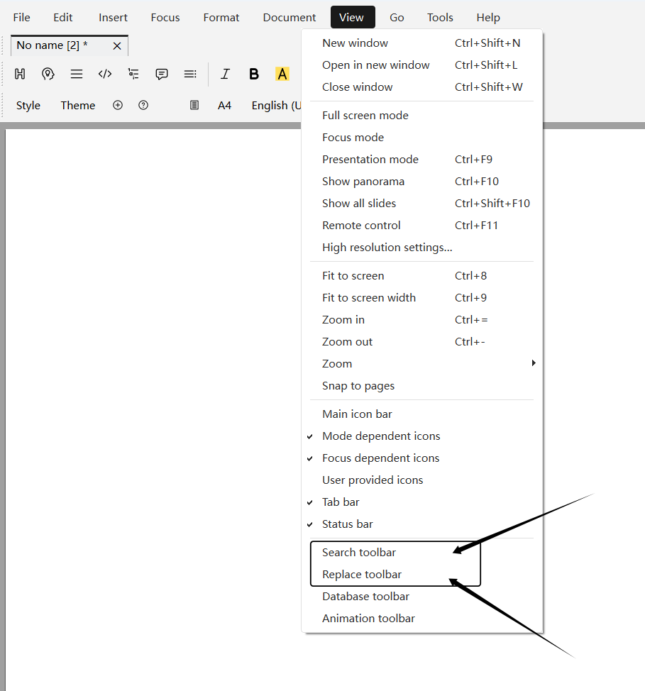 Figure 2: View ➔ Search Toolbar | Replace Toolbar