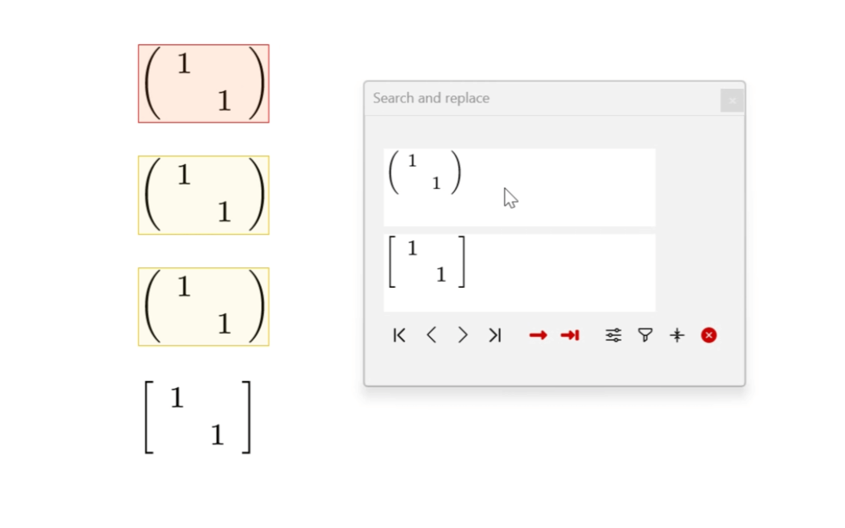 - Find all matrices in math mode