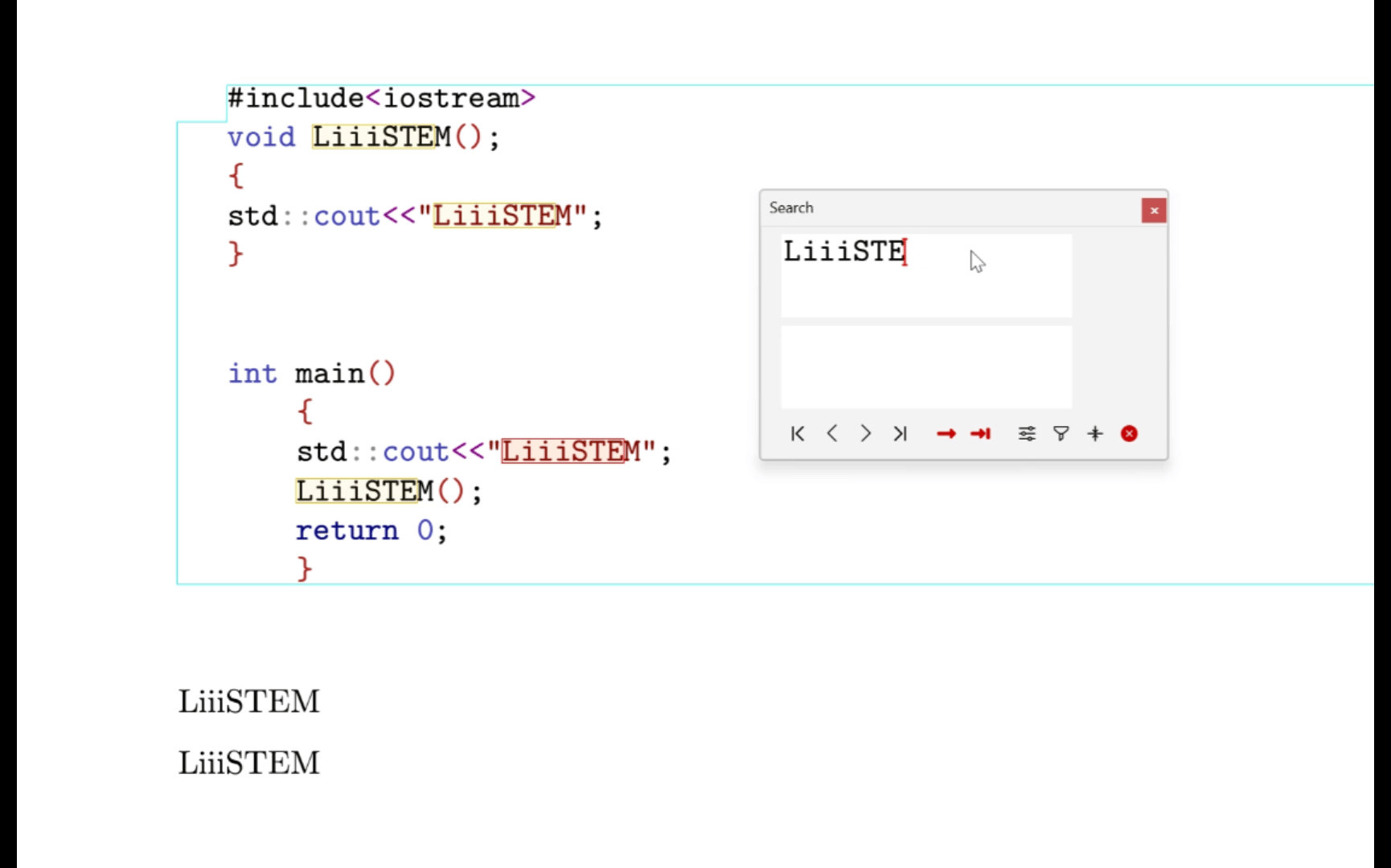 - Find all code with "LiiiSTEM" in command mode