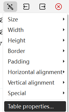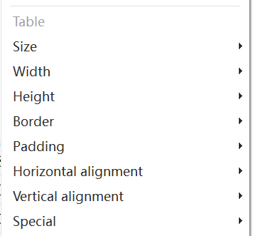 **c.**Right click to bring up the function bar, then set it in Table → Size.