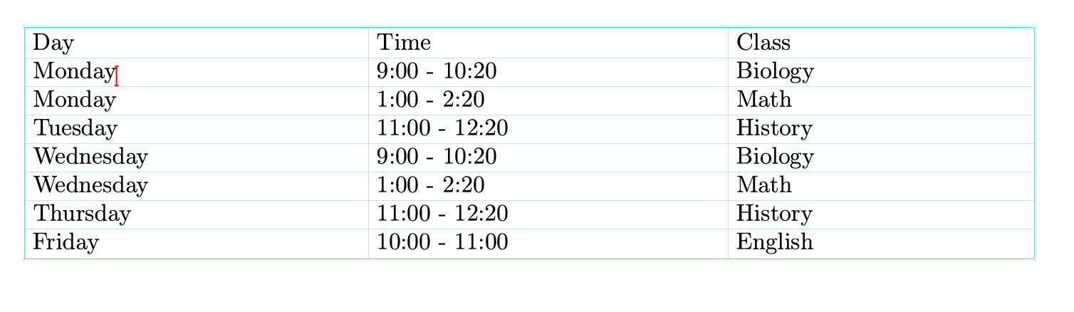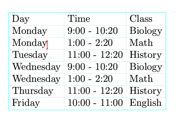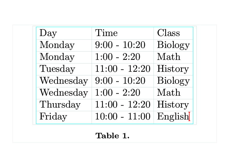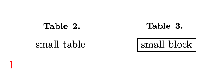 Numbered tables, a type of table with numbering and captions. A big tableoccupies a singleline while a small table doesn't.