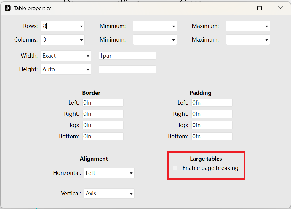 For long tables presented across pages, you can click Enable page breaking in Table Properties to enable page breaking.
