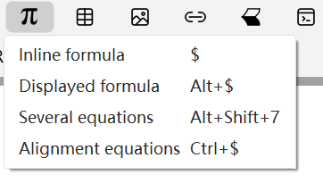 Click Insert math→Single line/Inline Formula.