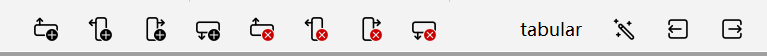 From left to right, are: insert row above, insert column to the left, insert column to the right, and insert row below; the last four are the corresponding deletion operations.